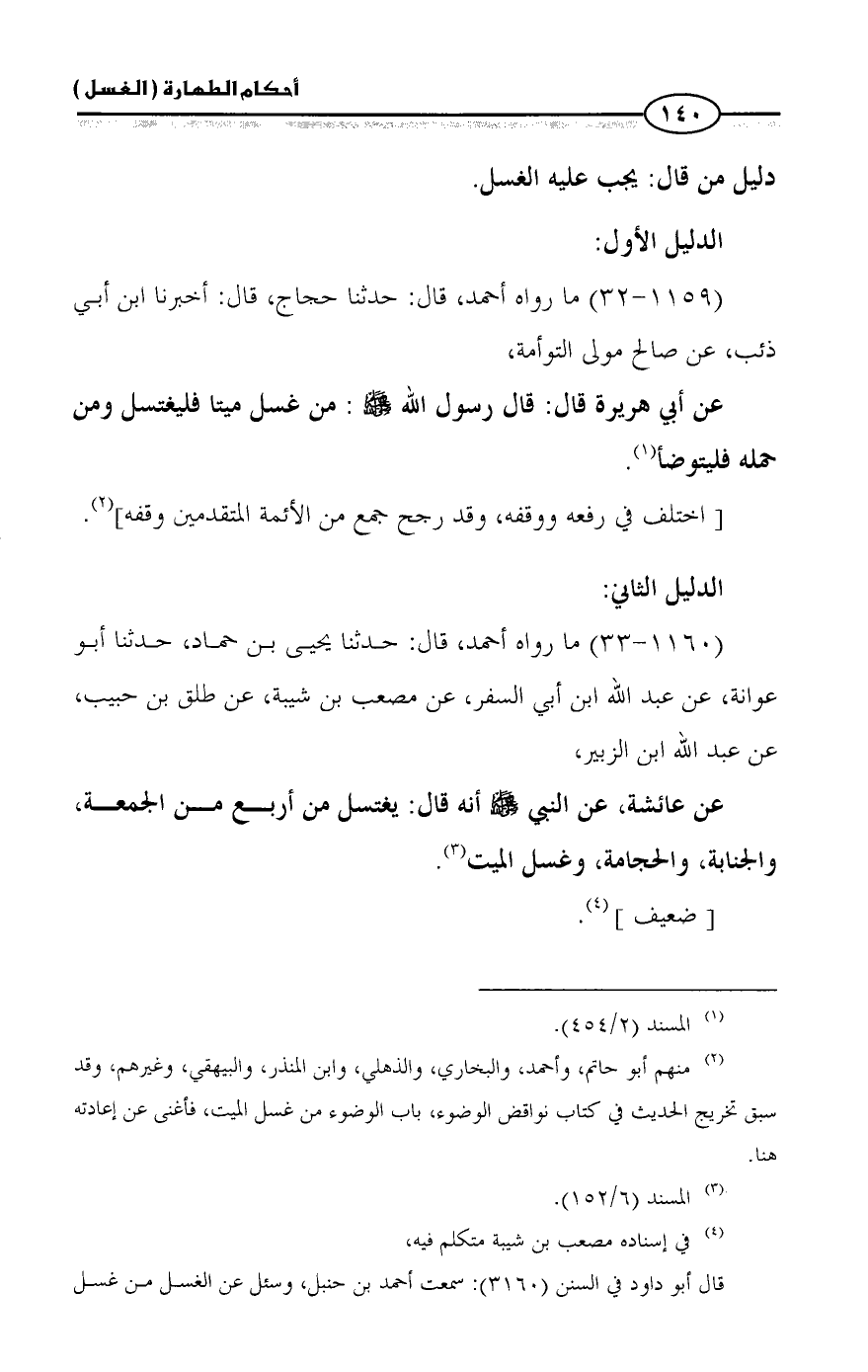 (١١٦٠ - ٣٣) ما رواه أحمد، قال: حدثنا يحيى بن حماد، حدثنا أبو عوانة، عن عبد الله ابن أبي السفر، عن مصعب بن شيبة، عن طلق بن حبيب، عن عبد الله ابن الزبير،