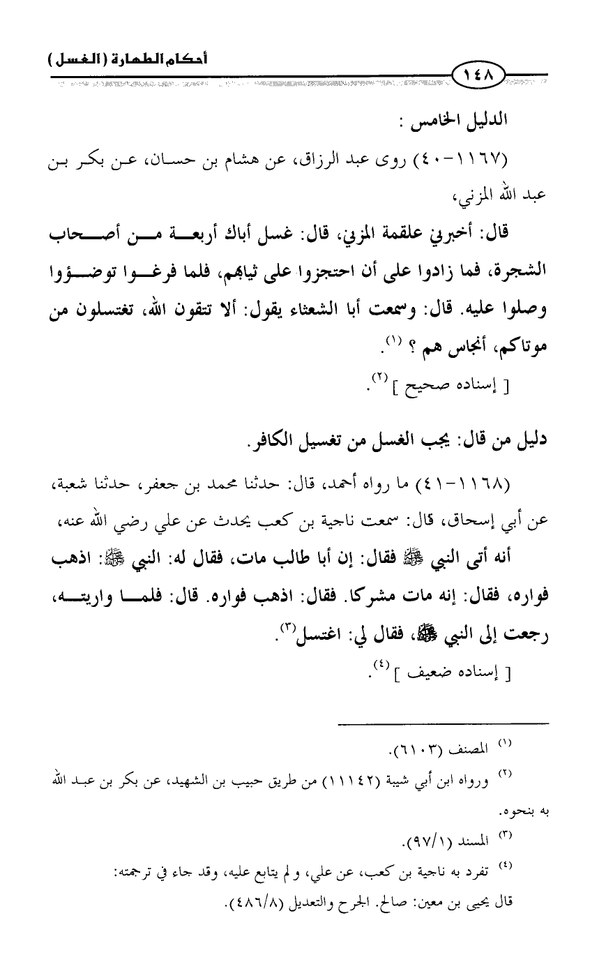 (١١٦٨ - ٤١) ما رواه أحمد، قال: حدثنا محمد بن جعفر، حدثنا شعبة، عن أبي إسحاق، قال: سمعت ناجية بن كعب يحدث عن علي رضي الله عنه،