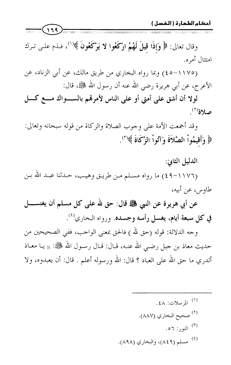 (١١٧٥ - ٤٥) وبما رواه البخاري من طريق مالك، عن أبي الزناد، عن الأعرج، عن أبي هريرة رضي الله عنه أن رسول الله - صلى الله عليه وسلم -، قال: