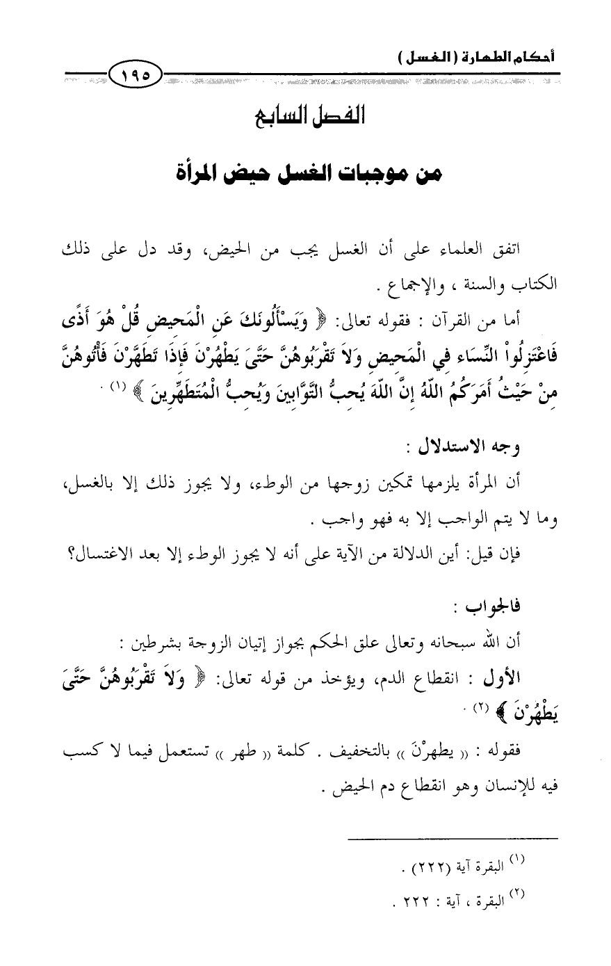 أما من القرآن: فقوله تعالى: {ويسألونك عن المحيض قل هو أذى فاعتزلوا النساء في المحيض ولا تقربوهن حتى يطهرن فإذا تطهرن فأتوهن من حيث أمركم الله إن الله يحب التوابين ويحب المتطهرين} (¬١).