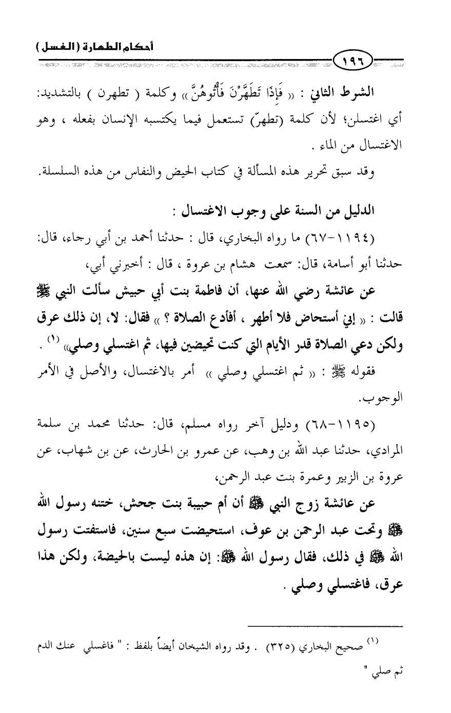 (١١٩٤ - ٦٧) ما رواه البخاري، قال: حدثنا أحمد بن أبي رجاء، قال: حدثنا أبو أسامة، قال: سمعت هشام بن عروة، قال: أخبرني أبي،