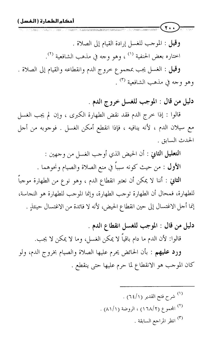 الثاني: أننا لا يمكن أن نعتبر انقطاع الدم، وهو نوع من الطهارة موجباً للطهارة، فمحال أن الطهارة توجب الطهارة، وإنما الموجب للطهارة هو النجاسة، إنما أجل الاغتسال إلى حين انقطاع الحيض، لأنه لا فائدة من الاغتسال حينئذٍ.