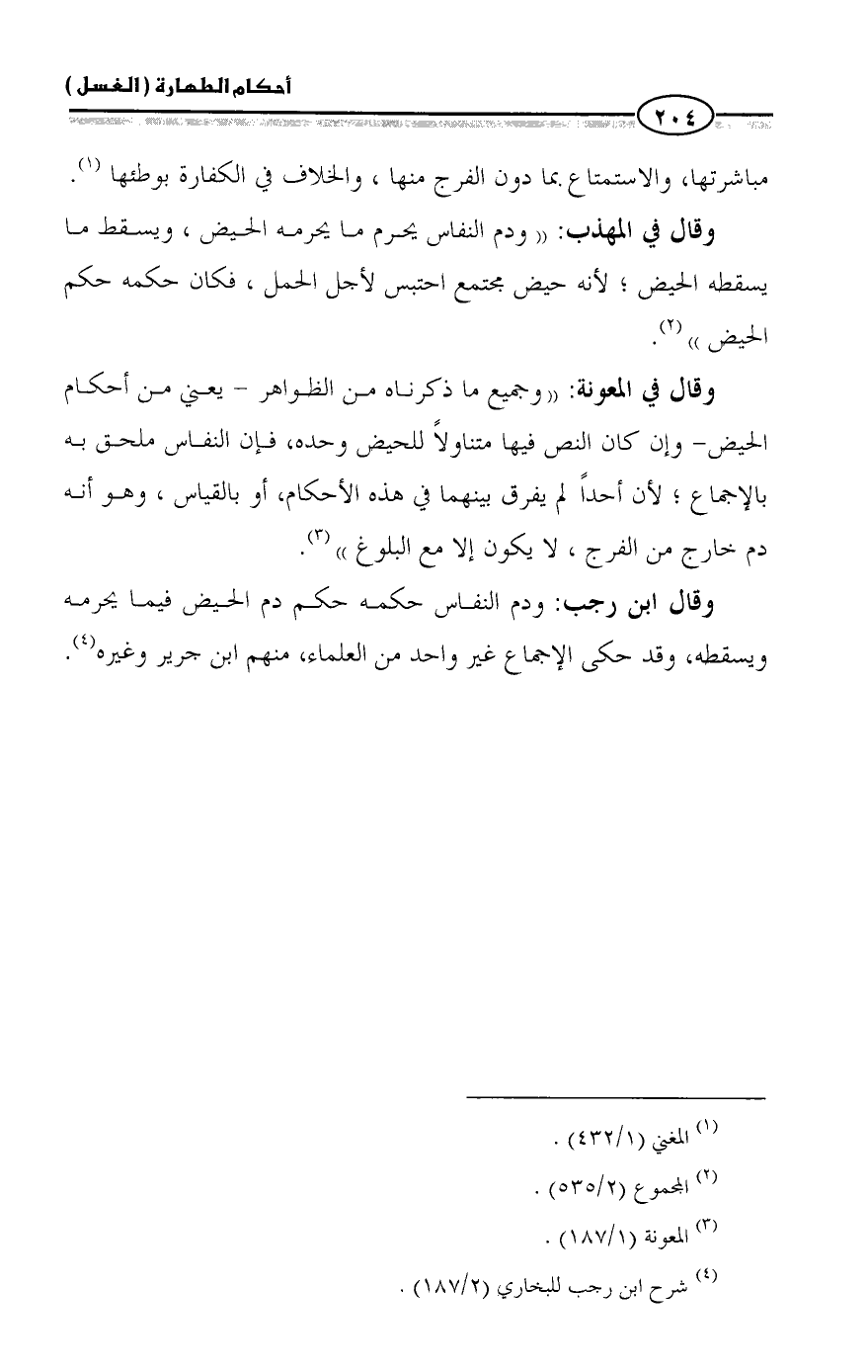 وقال ابن رجب: ودم النفاس حكمه حكم دم الحيض فيما يحرمه ويسقطه، وقد حكى الإجماع غير واحد من العلماء، منهم ابن جرير وغيره (¬٤).