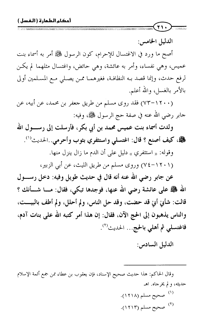 (١٢٠٠ - ٧٣) فقد روى مسلم من طريق جعفر بن محمد، عن أبيه، عن جابر رضي الله عنه في صفة حج الرسول - صلى الله عليه وسلم -، وفيه: