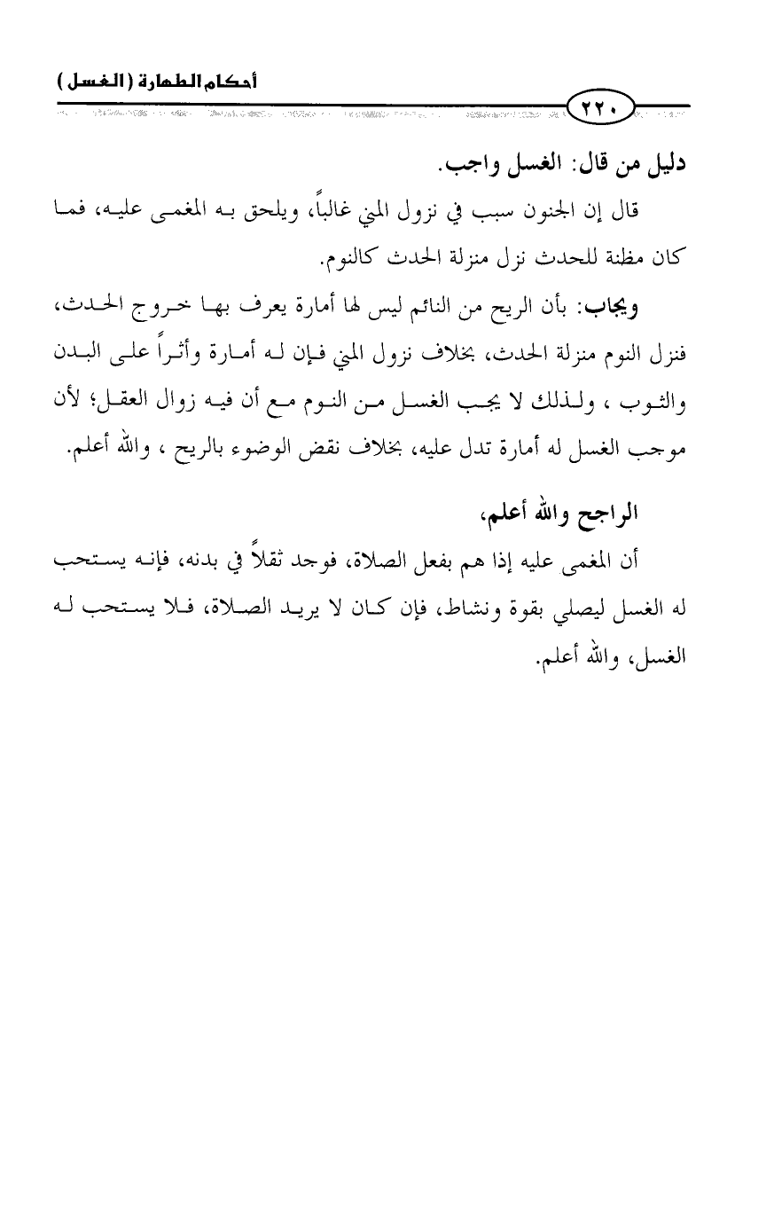 ويجاب: بأن الريح من النائم ليس لها أمارة يعرف بها خروج الحدث، فنزل النوم منزلة الحدث، بخلاف نزول المني فإن له أمارة وأثراً على البدن والثوب، ولذلك لا يجب الغسل من النوم مع أن فيه زوال العقل؛ لأن موجب الغسل له أمارة تدل عليه، بخلاف نقض الوضوء بالريح، والله أعلم.