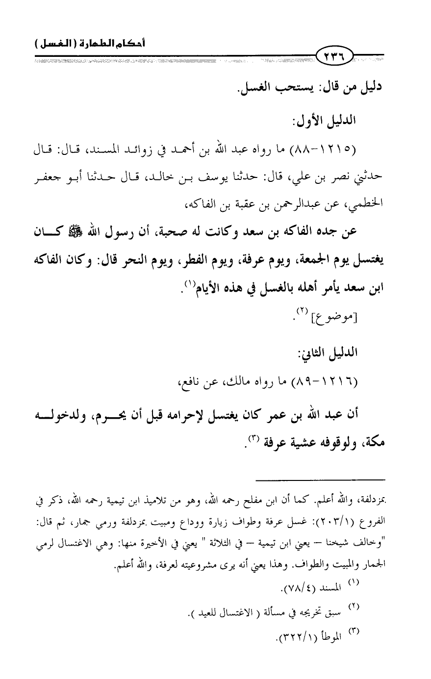 (¬٢) سبق تخريجه في مسألة (الاغتسال للعيد).
