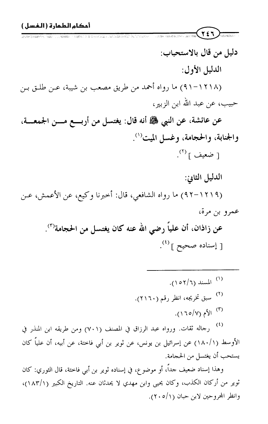 (١٢١٨ - ٩١) ما رواه أحمد من طريق مصعب بن شيبة، عن طلق بن حبيب، عن عبد الله ابن الزبير،