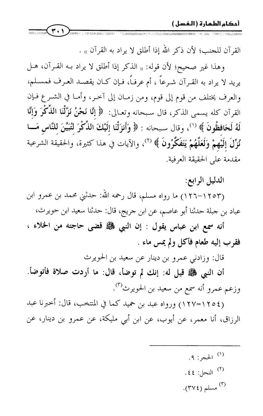 (١٢٥٣ - ١٢٦) ما رواه مسلم، قال رحمه الله: حدثني محمد بن عمرو ابن عباد بن جبلة حدثنا أبو عاصم، عن ابن جريج، قال: حدثنا سعيد ابن حويرث،