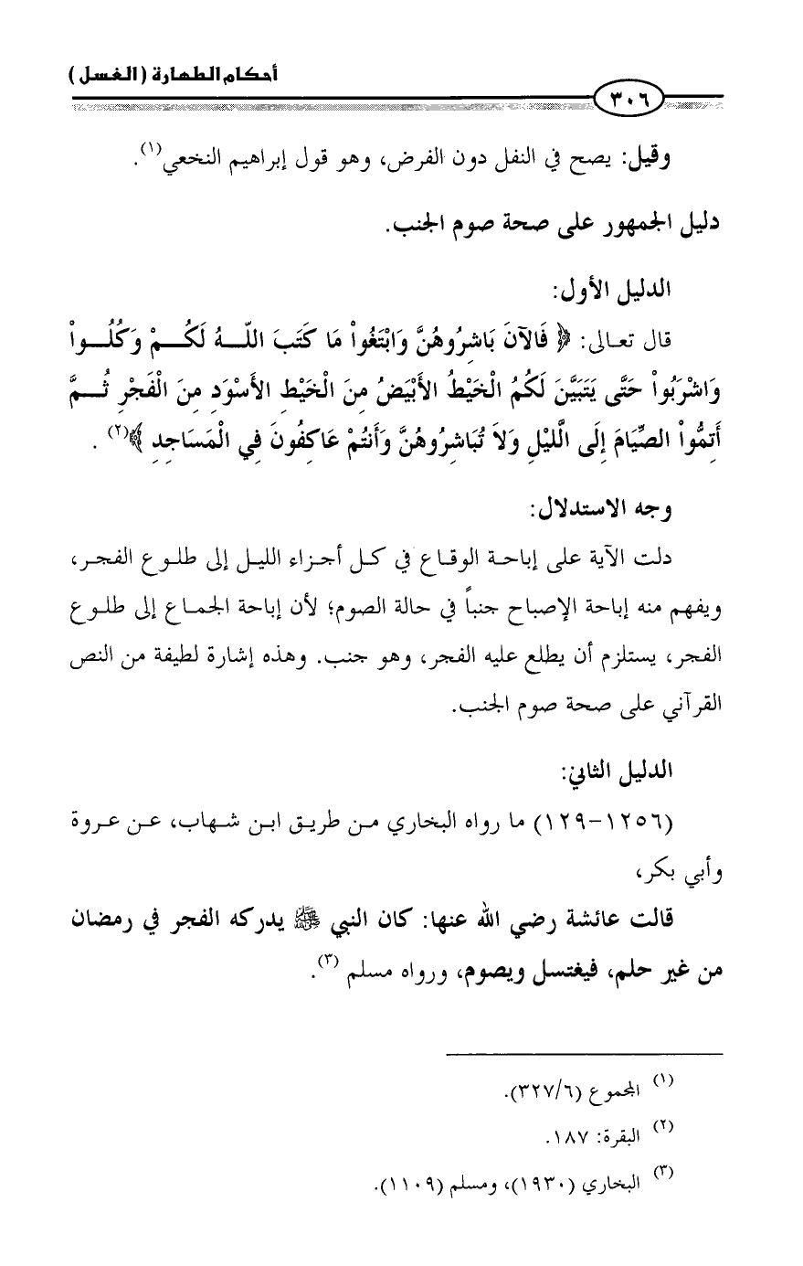 دليل الجمهور على صحة صوم الجنب.
