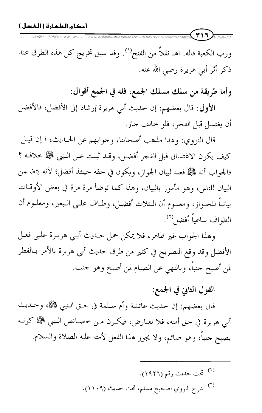 (¬٢) شرح النووي لصحيح مسلم، تحت حديث (١١٠٩).