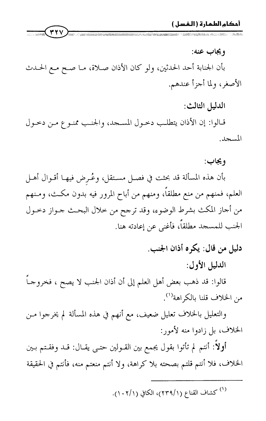 (¬١) كشاف القناع (١/ ٢٣٩)، الكافي (١/ ١٠٢).