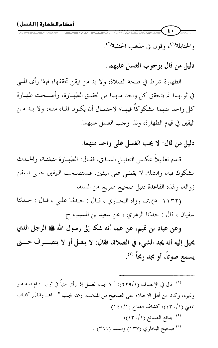 (¬١) قال في الإنصاف (١/ ٢٢٩): " لا يجب الغسل إذا رأى منياً في ثوب ينام فيه هو وغيره، وكانا من أهل الاحتلام على الصحيح من المذهب. وعنه يجب ". اهـ وانظر كتاب المغني (١/ ١٣٠)، كشاف القناع (١/ ١٤٠).