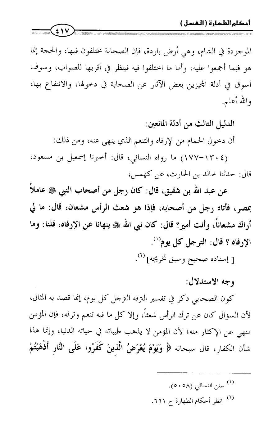 أن دخول الحمام من الإرفاه والتنعم الذي ينهى عنه، ومن ذلك: