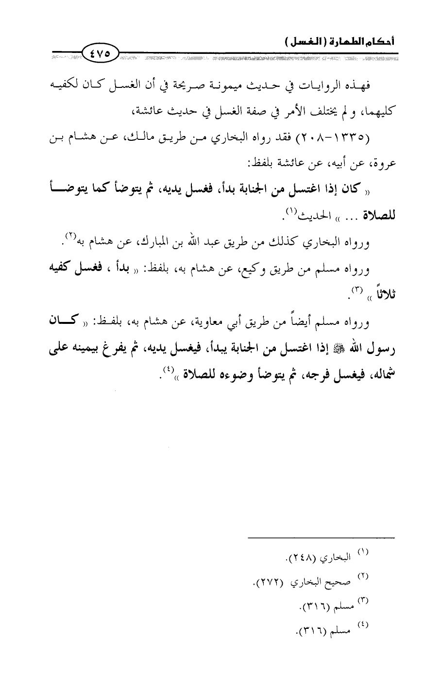 فهذه الروايات في حديث ميمونة صريحة في أن الغسل كان لكفيه كليهما، ولم يختلف الأمر في صفة الغسل في حديث عائشة،