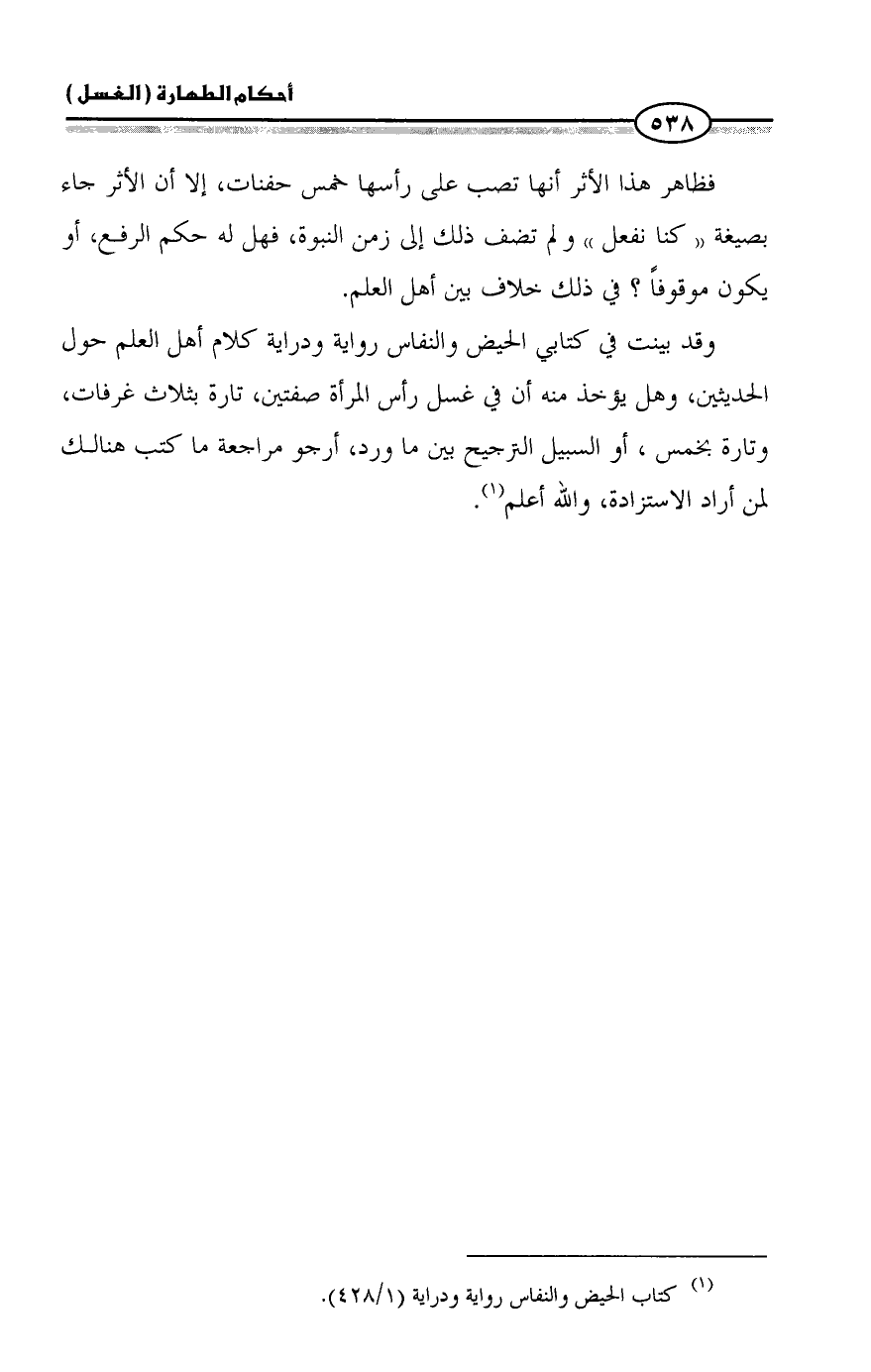 (¬١) كتاب الحيض والنفاس رواية ودراية (١/ ٤٢٨).