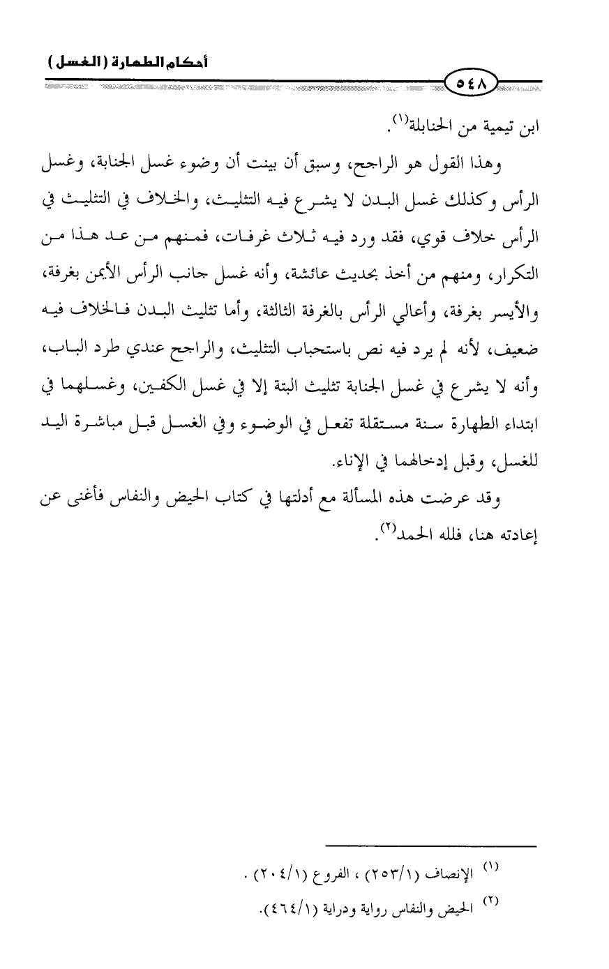 (¬١) الإنصاف (١/ ٢٥٣)، الفروع (١/ ٢٠٤).