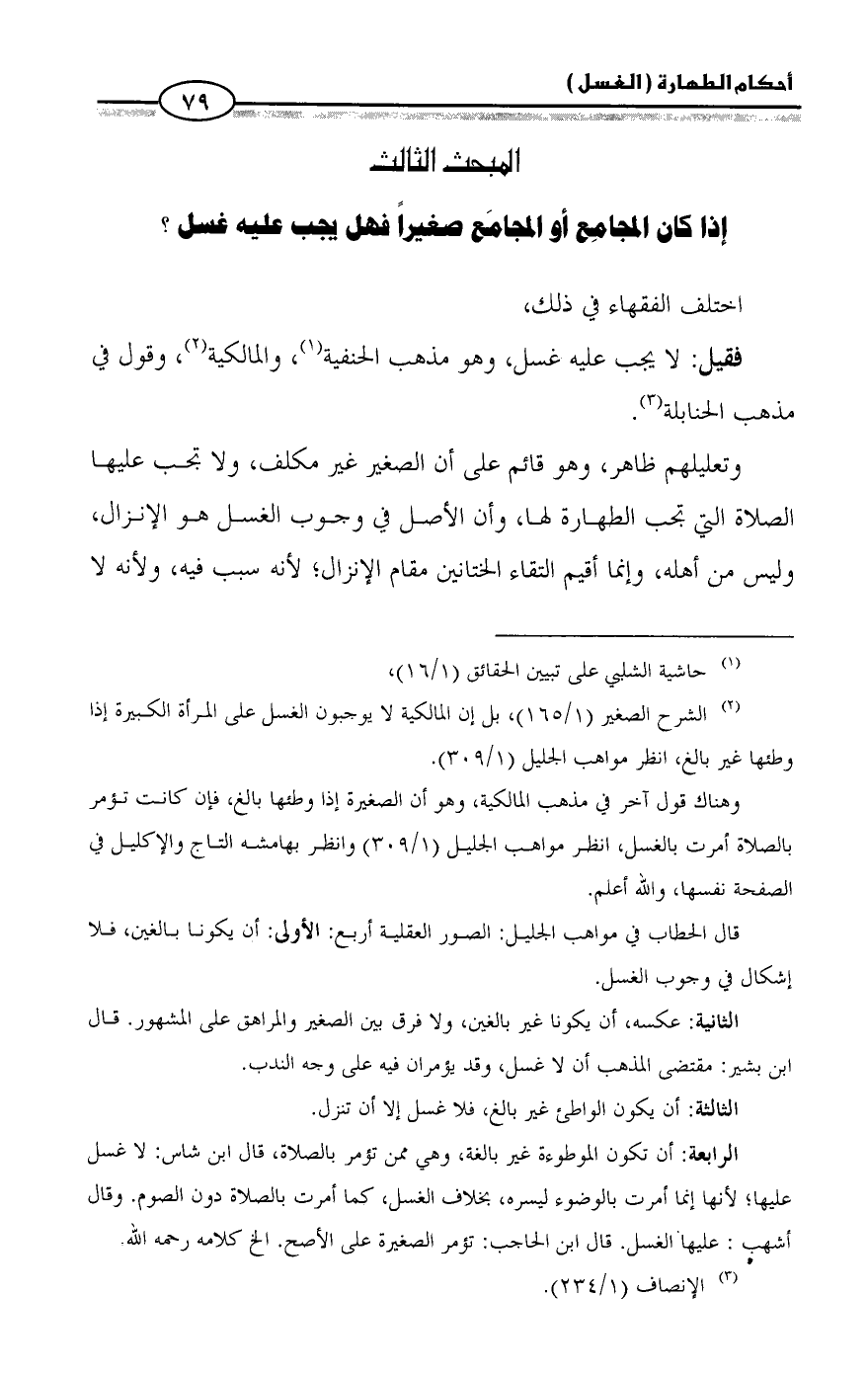 (¬٢) الشرح الصغير (١/ ١٦٥)، بل إن المالكية لا يوجبون الغسل على المرأة الكبيرة إذا وطئها غير بالغ، انظر مواهب الجليل (١/ ٣٠٩).