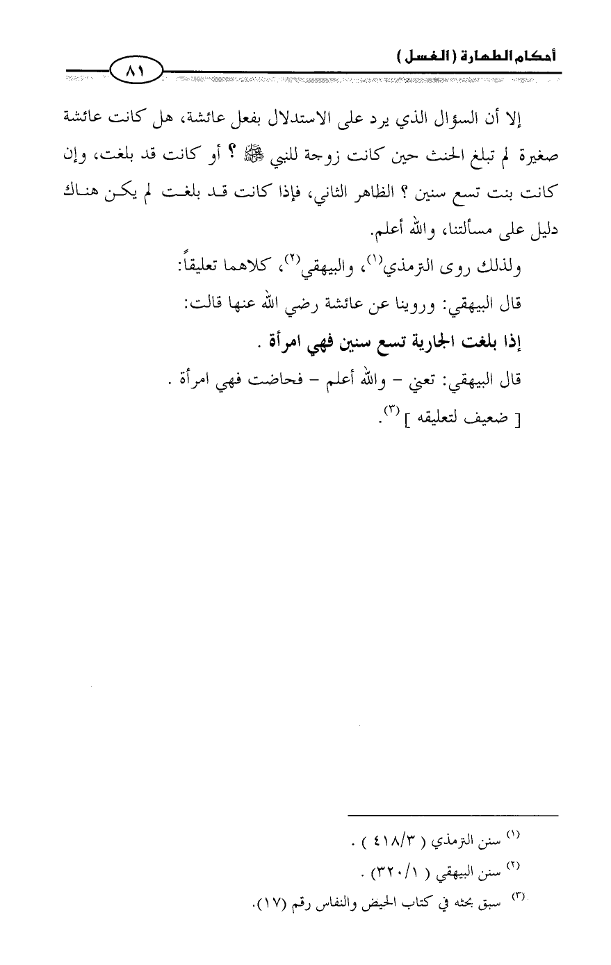 (¬٣) سبق بحثه في كتاب الحيض والنفاس رقم (١٧).