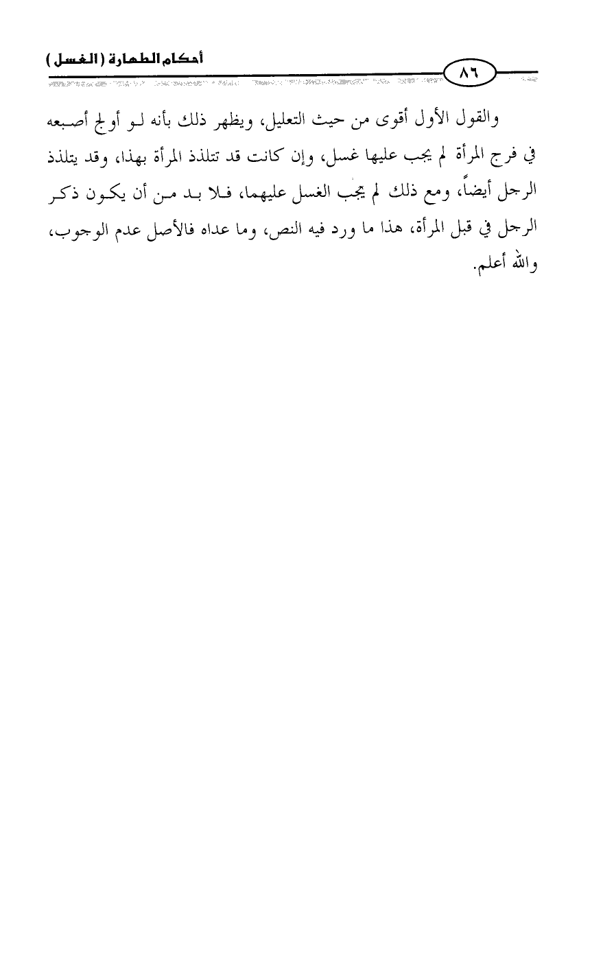 والقول الأول أقوى من حيث التعليل، ويظهر ذلك بأنه لو أولج أصبعه في فرج المرأة لم يجب عليها غسل، وإن كانت قد تتلذذ المرأة بهذا، وقد يتلذذ الرجل أيضاً، ومع ذلك لم يجب الغسل عليهما، فلا بد من أن يكون ذكر الرجل في قبل المرأة، هذا ما ورد فيه النص، وما عداه فالأصل عدم الوجوب، والله أعلم.