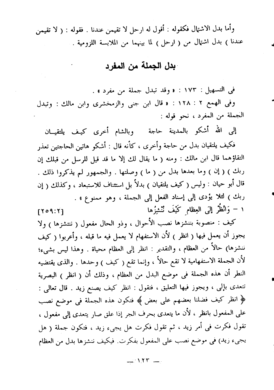 وفي الهمع 128:2 «قال ابن جني والزمخشري وابن مالك وتبدل الجملة من المفرد، نحو قوله: