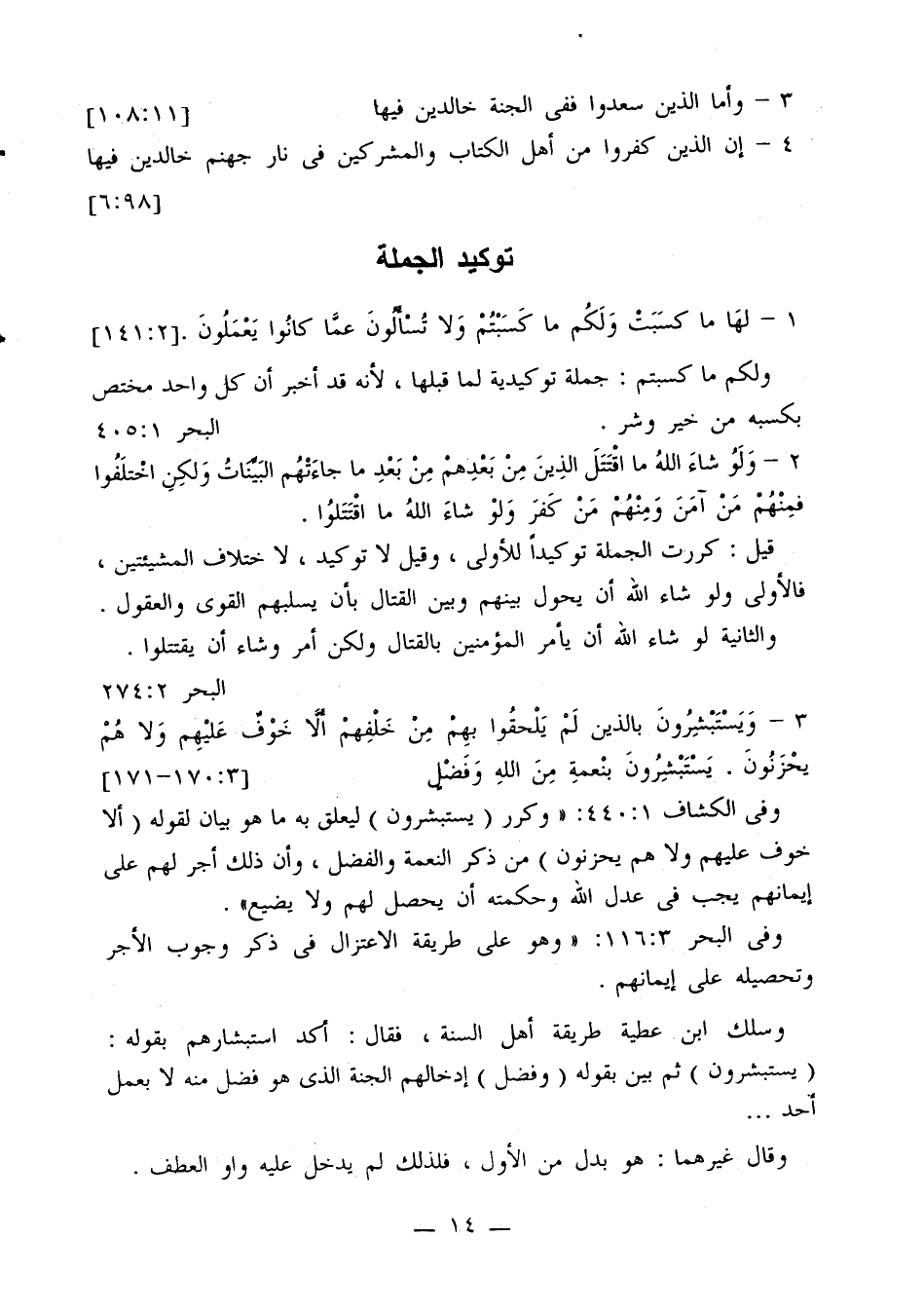 وفي البحر 116:3: «وهو على طريقة الاعتزال في ذكر وجوب الأجر وتحصيله على إيمانهم.