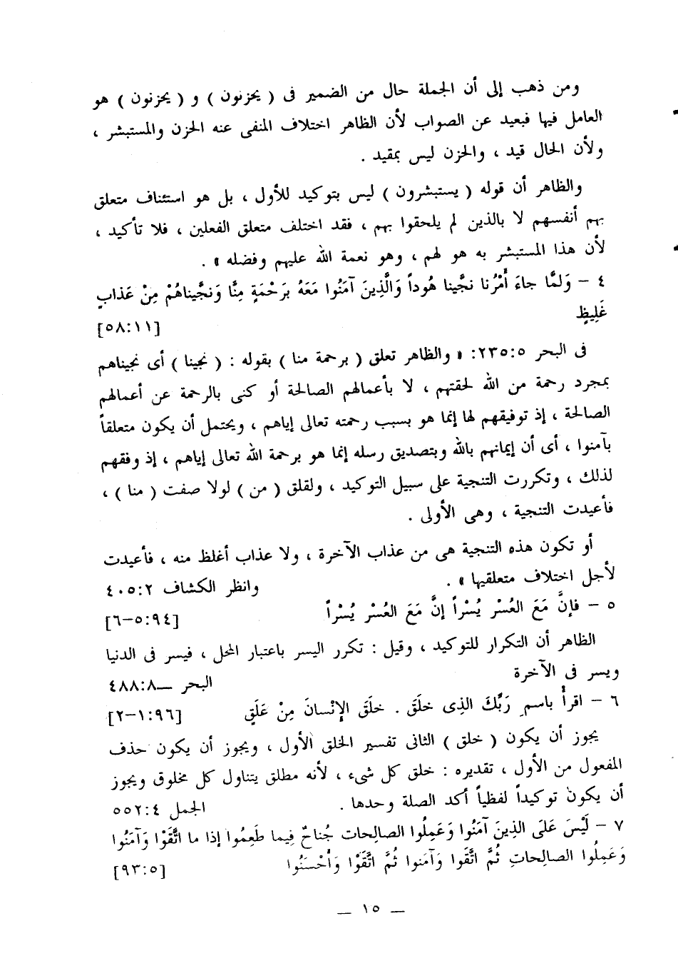 ومن ذهب إلى أن الجملة حال من الضمير في (يحزنون) و (يحزنون) هو العامل فيها فبعيد عن الصواب لأن الظاهر اختلاف المنفي عنه الحزن والمستبشر، ولأن الحال قيد، والحزن ليس بمقيد.