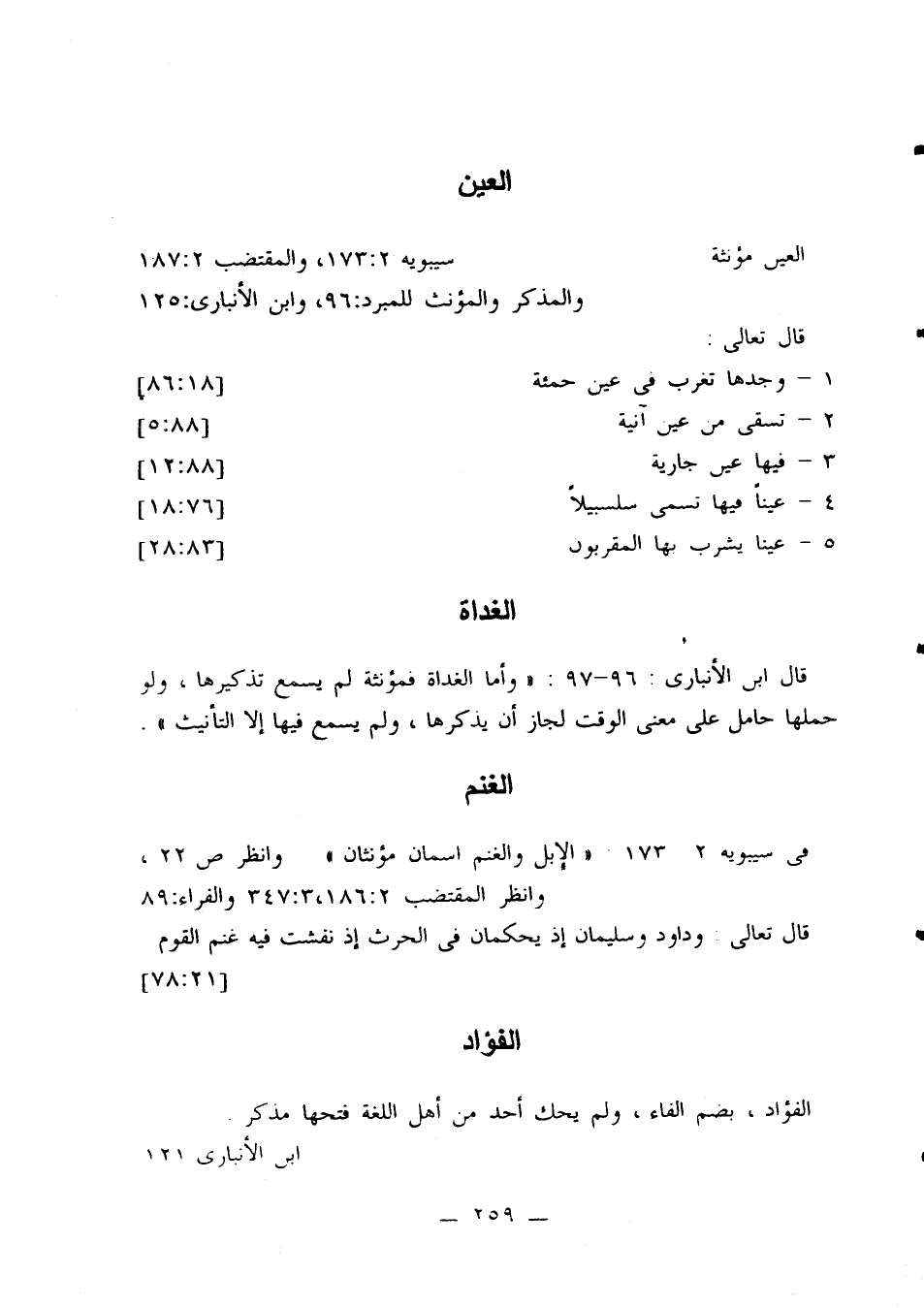 العين مؤنثة. سيبويه 173:2، والمقتضب 187:2