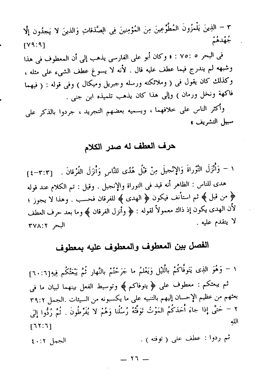 الفصل بين المعطوف والمعطوف عليه بمعطوف