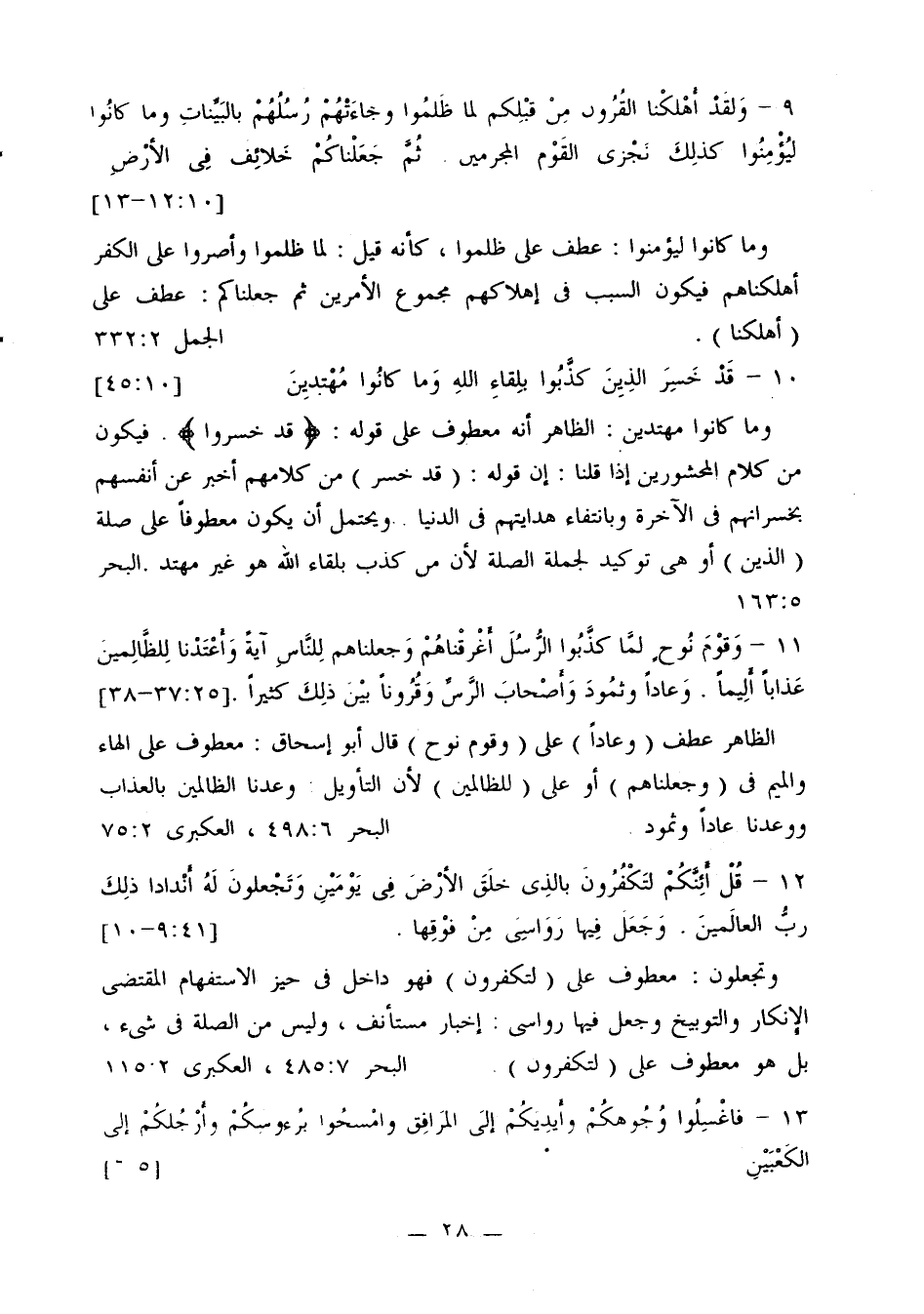 وما كانوا ليؤمنوا: عطف على ظلموا، كأنه قيل: لما ظلموا وأصروا على الكفر أهلكناهم فيكون السبب في إهلاكهم مجموع الأمرين ثم جعلناكم: عطف على (أهلكنا). الجمل 332:2