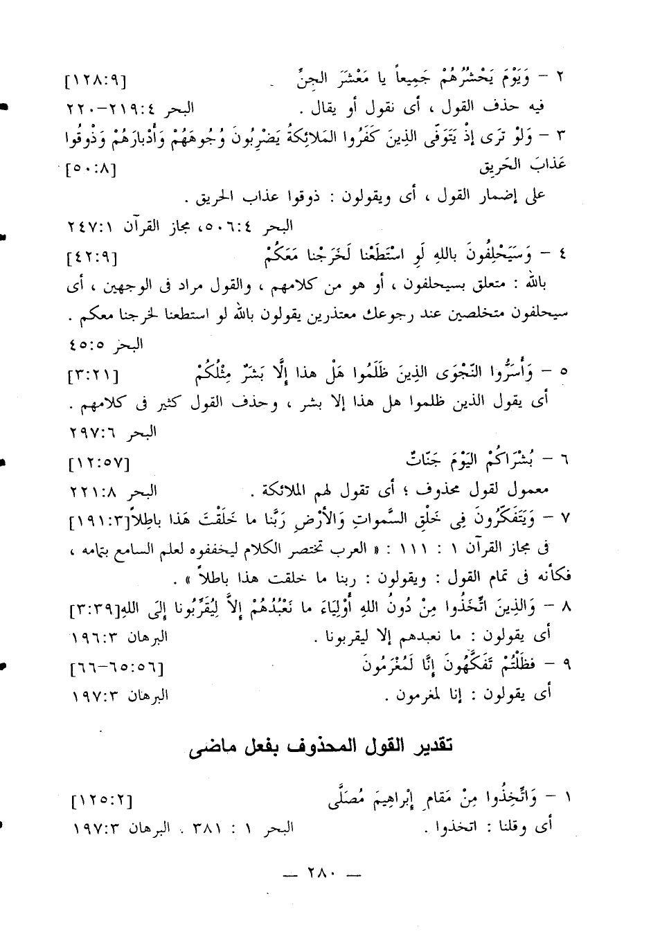 فيه حذف القول، أي نقول أو يقال. البحر 219:4 - 220