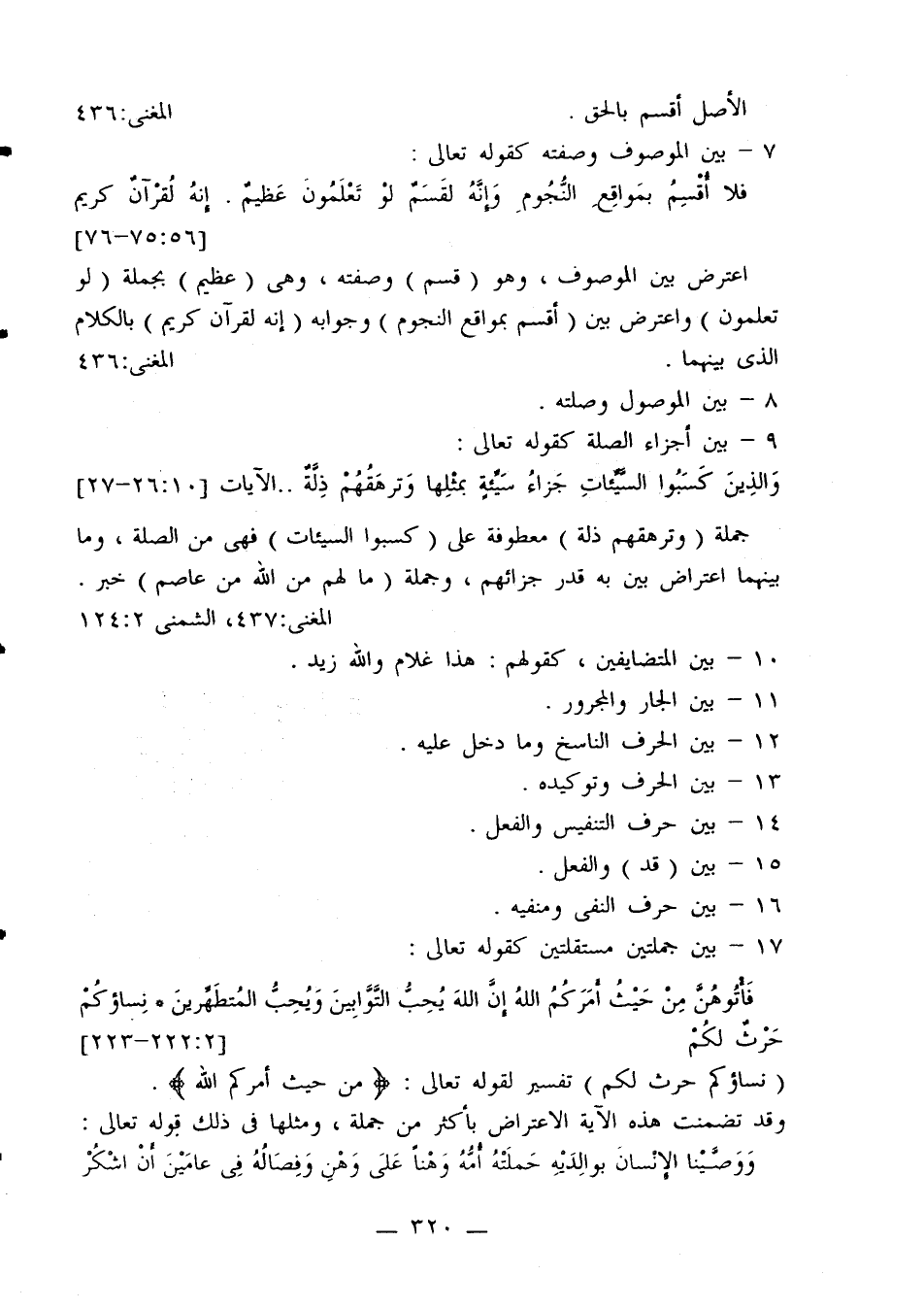 اعترض بين الموصوف، وهو (قسم)، وهي (عظيم) بجملة (لو تعلمون) واعترض بين (اقسم بمواقع النجوم) وجوابه (إنه لقرآن كريم) بالكلام الذي بينهما. المغنى: 436