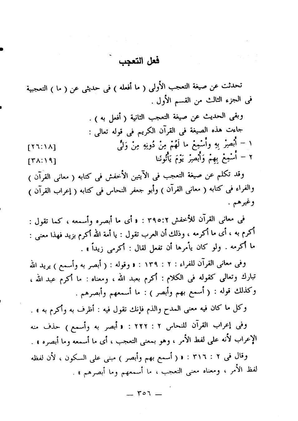 وقد تكلم عن صيغة التعجب في الآيتين الأخفش في كتابه (معاني القرآن) والفراء في كتابه (معاني القرآن) وأبو جعفر النحاس في كتابه (إعراب القرآن) وغيرهم.