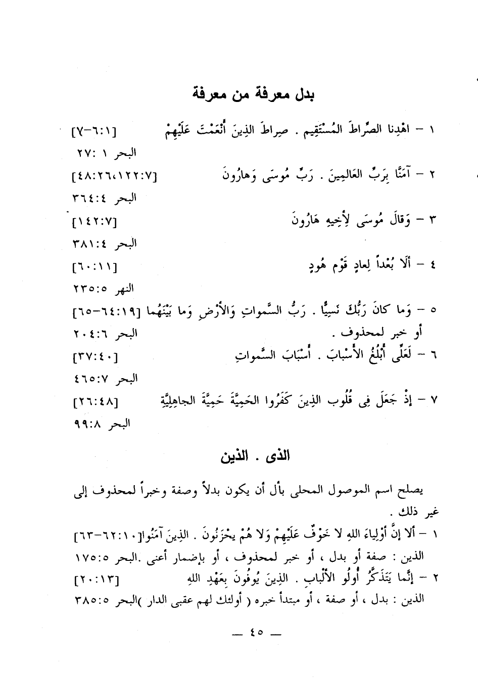 يصلح اسم الموصول المحلي بأل أن يكون بدلاً وصفة وخبرًا لمحذوف إلى غير ذلك.
