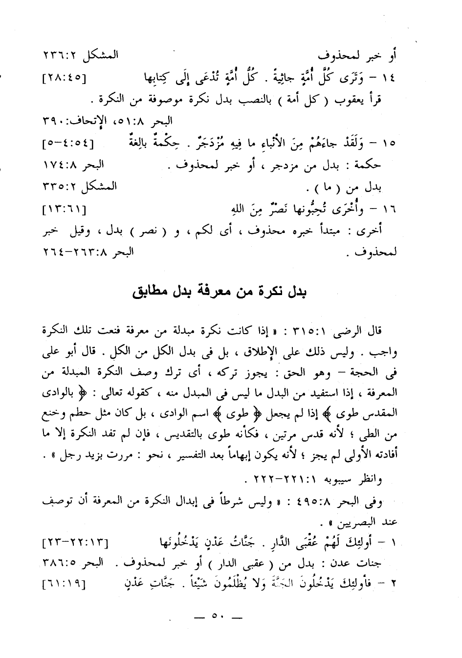 وفي البحر 495:8: «وليس شرطًا في إبدال النكرة من المعرفة أن توصف عند البصريين».
