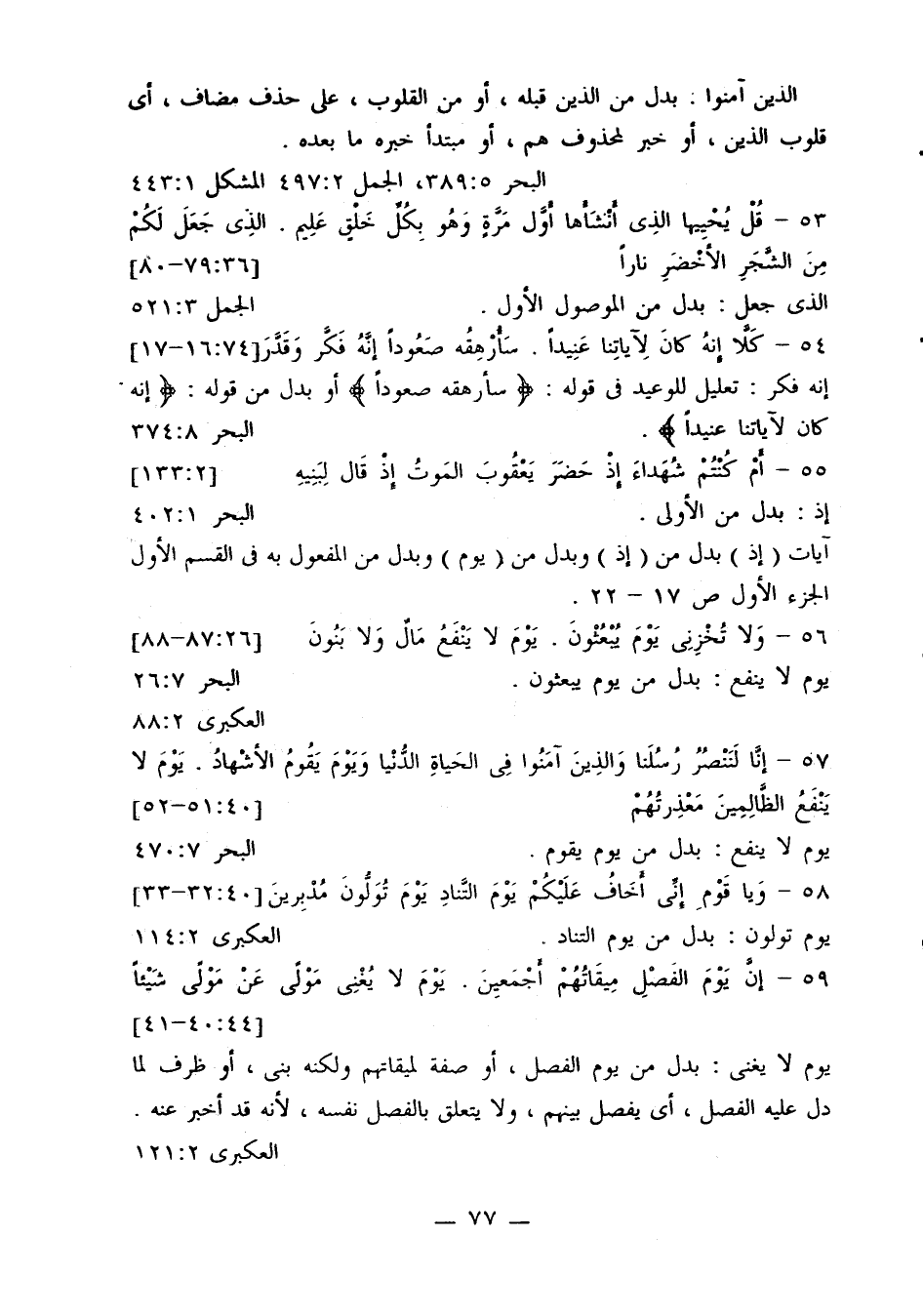 آيات (إذ) بدل من (إذ) وبدل من (يوم) وبدل من المفعول به في القسم الأول الجزء الأول ص 17 - 22.