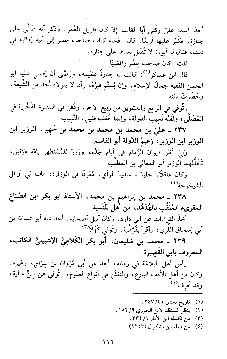 237 - عليّ بْن محمد بْن محمد بْن محمد بْن جَهير، الوزير ابن الوزير ابن الوزير، زعيم الدّولة أبو القاسم. [المتوفى: 508 هـ]