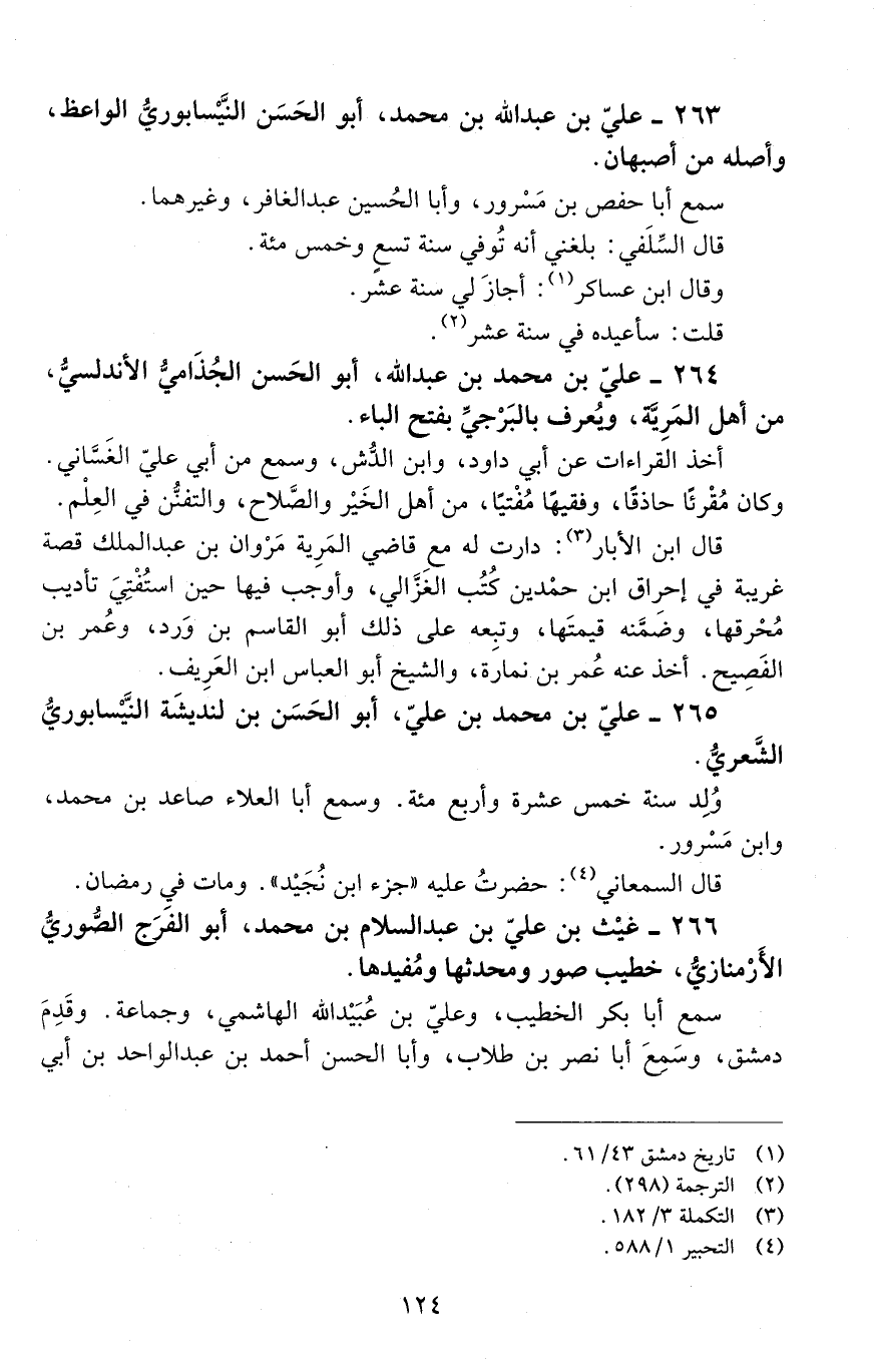 266 - غْيث بْن عليّ بن عبد السلام بْن محمد، أبو الفَرَج الصُّوري، الأَرْمَنَازيّ، [المتوفى: 509 هـ]