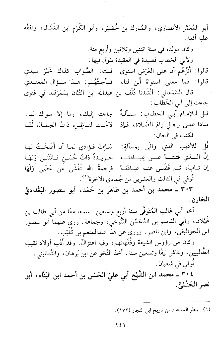 304 - محمد ابن الشيخ أبي علي الحسن بن أحمد ابن البنّاء، أبو نصر الحَنْبليّ. [المتوفى: 510 هـ]-[142]-
