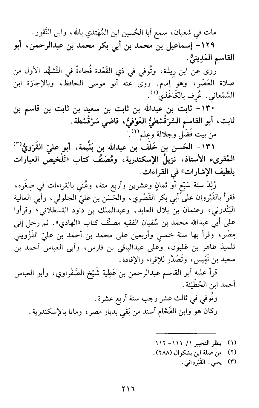 130 - ثابت بن عبد الله بن ثابت بن سعيد بن ثابت بن قاسم بن ثابت، أبو القاسم السَّرَقُسْطيّ العَوْفيّ، [المتوفى: 514 هـ]