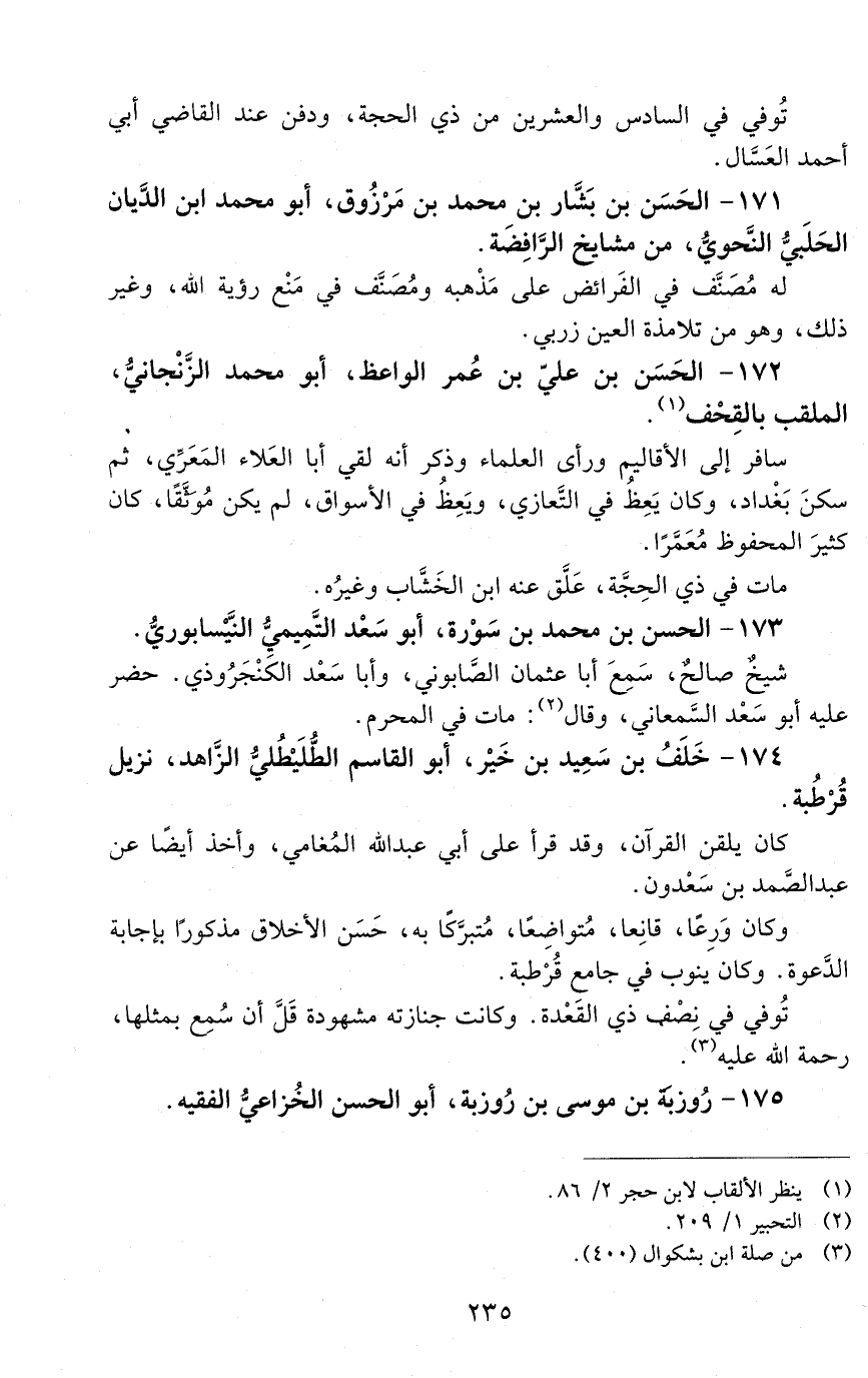 172 - الحسن بن علي بن عمر الواعظ، أبو محمد الزَّنجانيُّ، الملقب بالقحف. [المتوفى: 515 هـ]