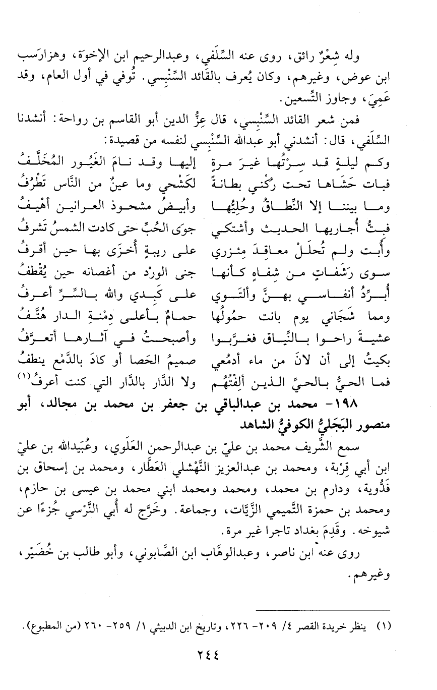 198 - محمد بن عبد الباقي بن جعفر بن محمد بن مجالد، أبو منصور البَجَليّ الكوفيّ الشّاهد. [المتوفى: 515 هـ]