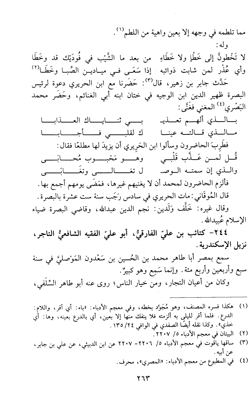 244 - كتائب بن عليّ الفارقيُّ، أبو عليّ الفقيه الشافعيُّ التاجر، [المتوفى: 516 هـ]