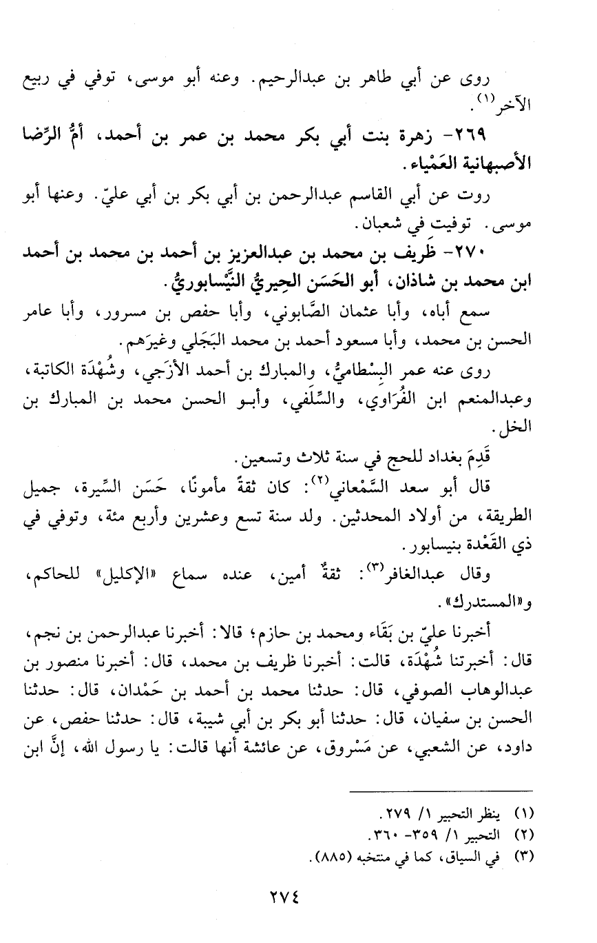270 - ظريف بن محمد بن عبد العزيز بن احمد بن محمد بن أَحْمَد بن محمد بن شاذان، أبو الحسن الحيريُّ النَّيسابوريُّ. [المتوفى: 517 هـ]