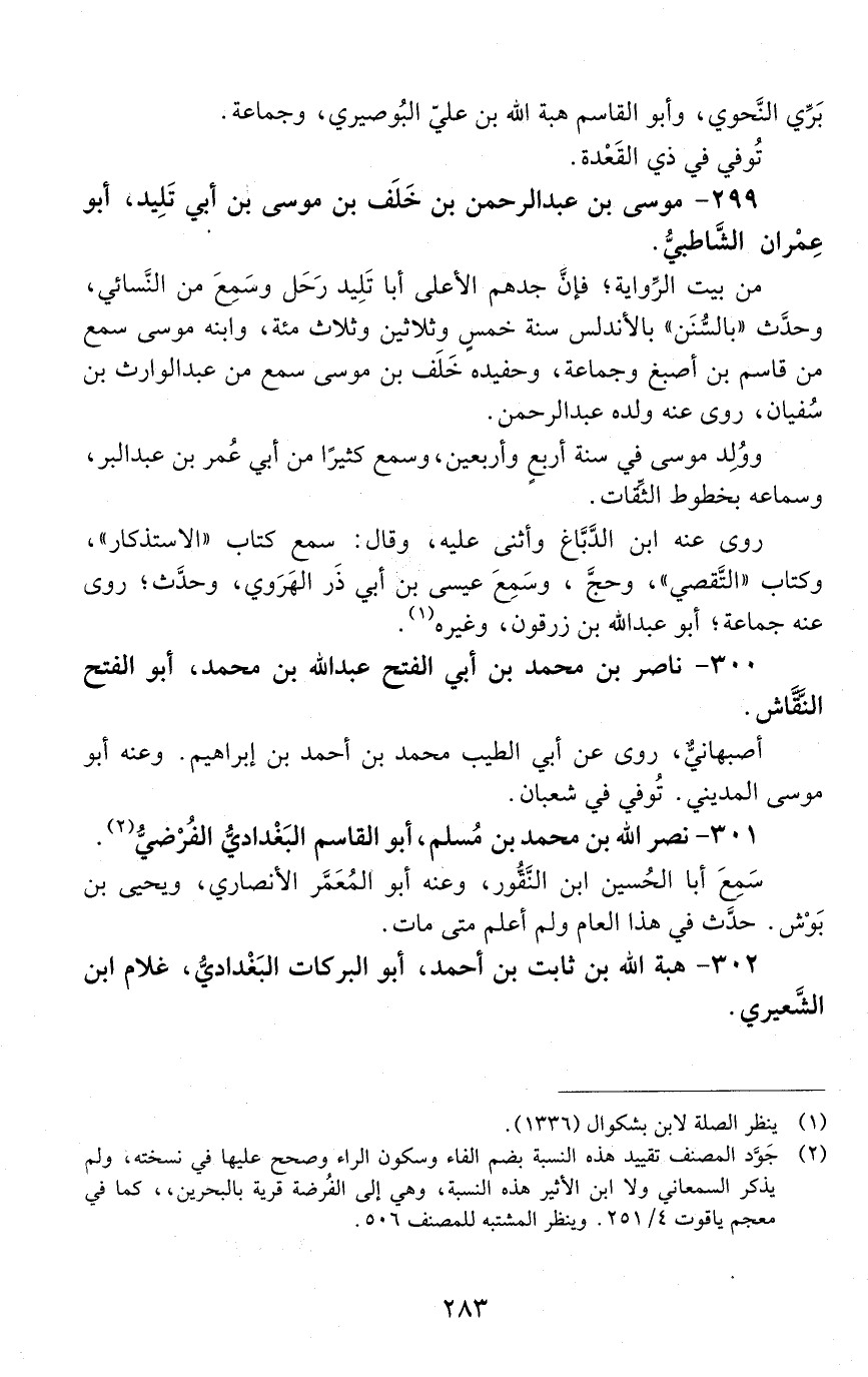 299 - موسى بْن عَبْد الرَّحْمَن بْن خَلَف بْن موسى بْن أبي تَلِيد، أبو عِمران الشّاطبيّ. [المتوفى: 517 هـ]