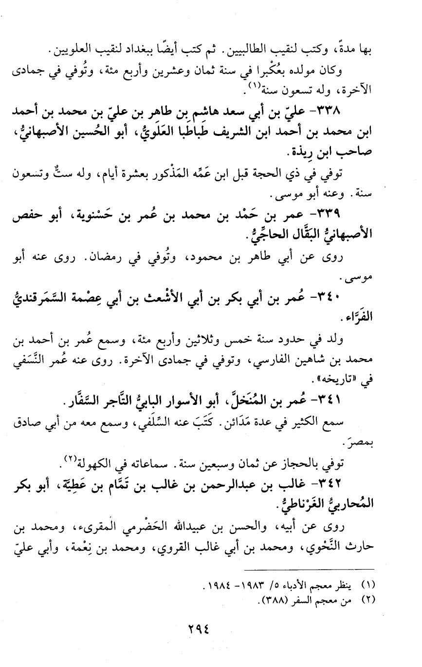 338 - علي بن أبي سعد هاشم بْن طاهر بْن عليّ بْن محمد بْن أحمد بن محمد بن أحمد ابن الشريف طباطبا، العلوي أبو الحسين الإصبهاني، [المتوفى: 518 هـ]