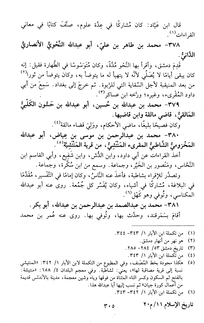 378 - محمد بن طاهر بن عليّ، أبو عبد الله النَّحويُّ الأنصاريُّ الدَّانيُّ. [المتوفى: 519 هـ]