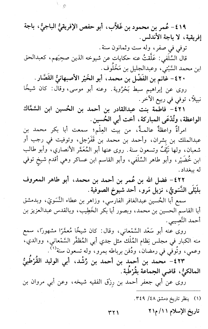 419 - عُمَر بْن محمود بْن غَلّاب، أبو حفص الإفريقيّ الباجيّ، [المتوفى: 520 هـ]