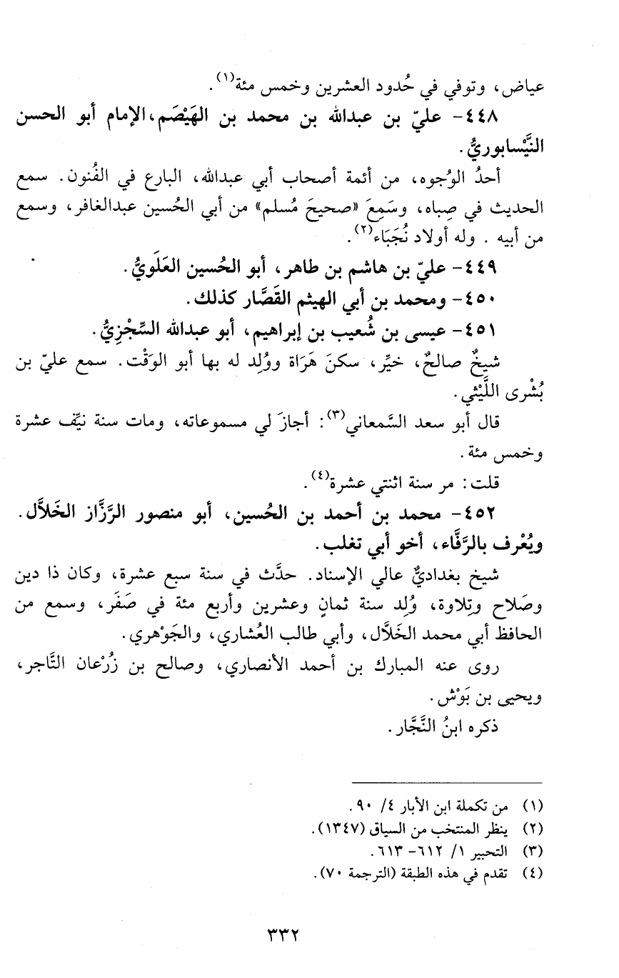 448 - علي بن عبد الله بن محمد بن الهَيْصم، الإمام أبو الحَسَن النَّيْسابوريّ. [الوفاة: 511 - 520 هـ]