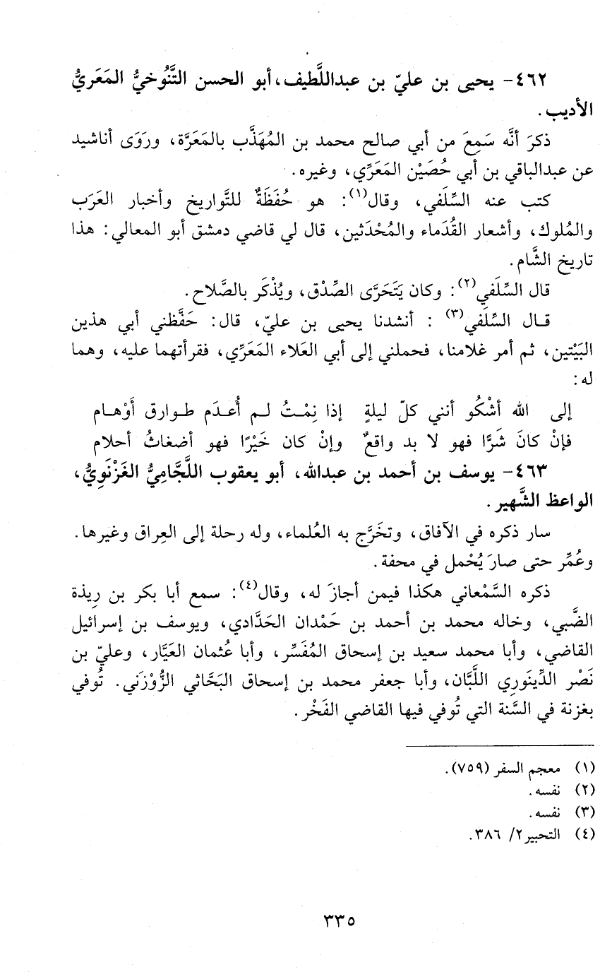 462 - يحيى بن علي بن عبد اللطيف، أبو الحسن التنوخي المعري، الأديب. [الوفاة: 511 - 520 هـ]