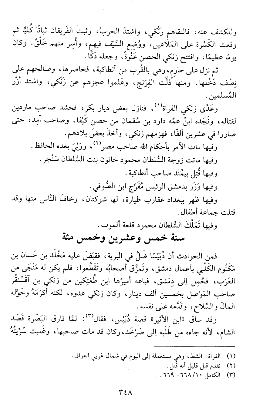 قال ابن واصل: وفى المحرَّم سنة خمسٍ وعشرين توجّه زنكيّ راجعًا من الشّام إلى الموصل.
